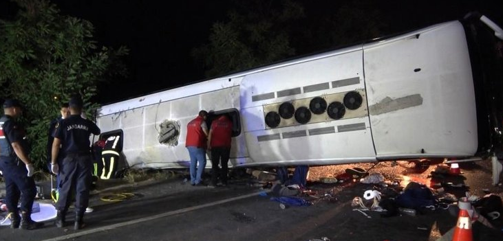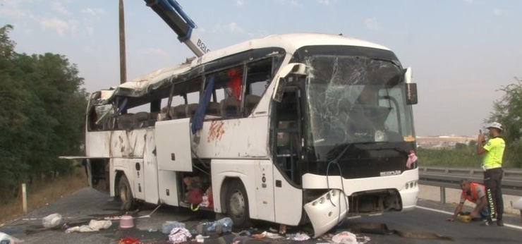 Denizli'nin Honaz ilçesinde, demir bariyeri parçalayıp refüjü aşarak karşı şeride geçen kum yüklü kamyon, düğüne gidenleri taşıyan otobüse çarptı. Kazada, 1'i polis, 6 kişi öldü, 43 kişi yaralandı. Ölenlerden bazılarının vücut bütünlüğünün bozulması nedeniyle kimliklerinin tespiti için parmak izi incelemesi yapılacağı bildirildi
