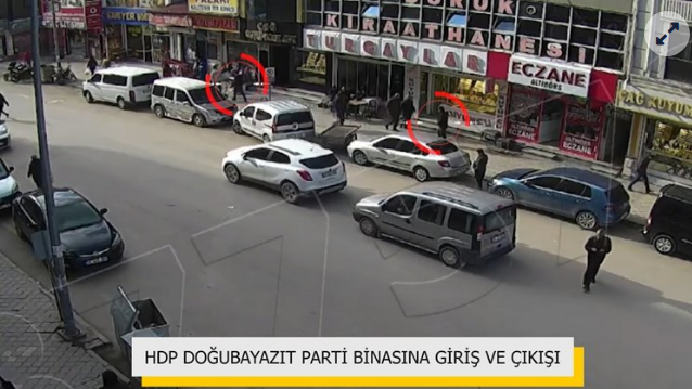 Kent merkezinden MOBESE ve birçok işyerine ait kameraların incelenmesiyle PKK'lı teröristin Doğubayazıt HDP ilçe binasına giriş yaptığı tespit edildi.
