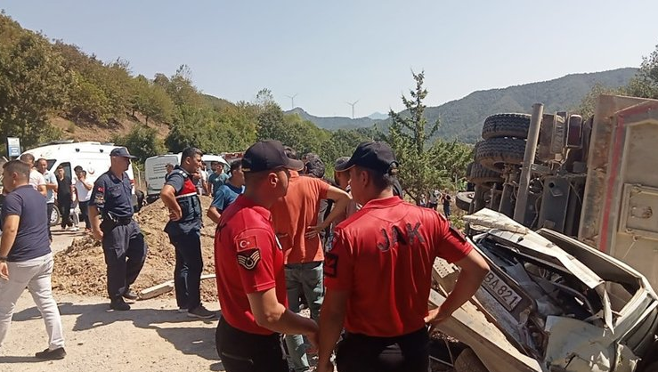 Ekipler, kamyonun altında kalan kişileri kurtarmak için çalışmalarını sürdürüyor.