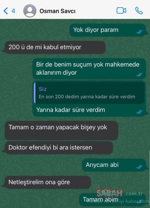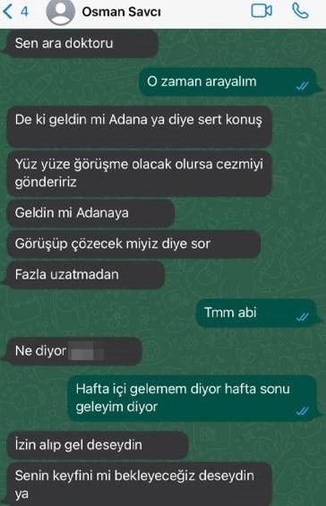 Ele geçirilen WhatsApp konuşmalarında, örgüt üyesinin savcının talimatıyla bir doktordan "takipsizlik kararı" karşılığında para istediği yer alırken, örgüt üyesi ile savcı arasında geçen diyalog şöyle: