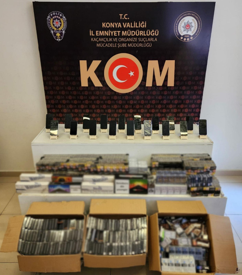 Konya Kaçakçılık ve Organize Suçlarla Mücadele Şube Müdürlüğü ekipleri kaçakçılara göz açtırmıyor. KOM ekiplerince yapılan çalışmalarda binlerce tütün mamulü, ruhsatsız silah, kaçak alkollü içecek, gümrük kaçağı otomobil ve araç motorları ele geçirilirken 15 şahıs hakkında adli işlem başlatıldı.