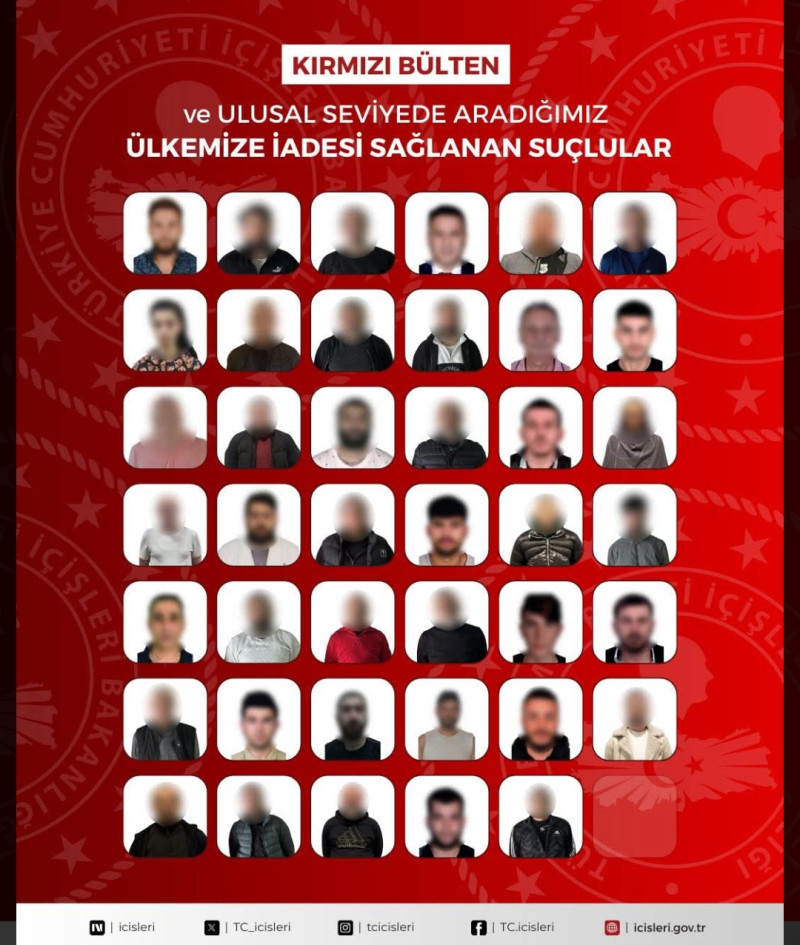 Uluslararası seviyede aranan ve yakalanarak iade edilen şahıslar şunlar: