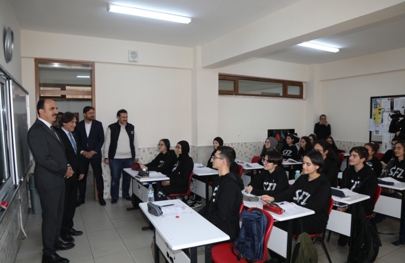 Konya Büyükşehir Belediye Başkanı Uğur İbrahim Altay, okul ziyaretlerinde öğrencilerle buluşmaya devam ediyor. Sınıfları tek tek ziyaret ederek öğrencilerle sohbet eden Başkan Altay, Konya’nın öğrenci sayısı ve genç nüfusuyla Türkiye’nin en aktif ve dinamik şehirlerinin başında geldiğini hatırlattı. Yöneticiler olarak şehrin bu dinamizmini en etkin ve verimli şekilde kullanmaya gayret ettiklerini kaydeden Başkan Altay, “Fırsat buldukça okulları ziyaret ediyor, gençlerimizle hashibal ediyoruz. Bugün de Selçuklu Fen Lisesi’nde öğrencilerimizle bir araya gelmenin mutluluğunu yaşadık. Bugün öğrencilerimizin başarısı yarın ülkemizin daha güçlü olmasına vesile olacak inşallah. Biz de Büyükşehir Belediyesi olarak öğrencilerimizin başarısı için tüm imkanlarımızı seferber etmeye devam edeceğiz.” dedi. Başkan Altay, okul yönetimleri ile öğretmenlere de gösterdikleri ilgiden dolayı teşekkür etti