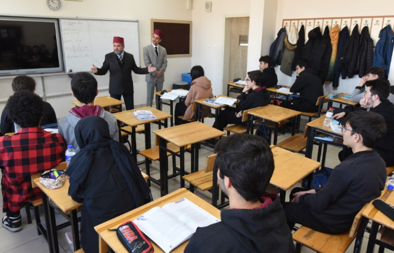 Mehmet Akif Ersoy ile Hamdullah Suphi Tanrıöver’i canlandıran profesyonel tiyatro oyuncuları, ilçedeki tüm okullara giderek ders sırasında sınıf kapılarını çalıp içeri girdi.