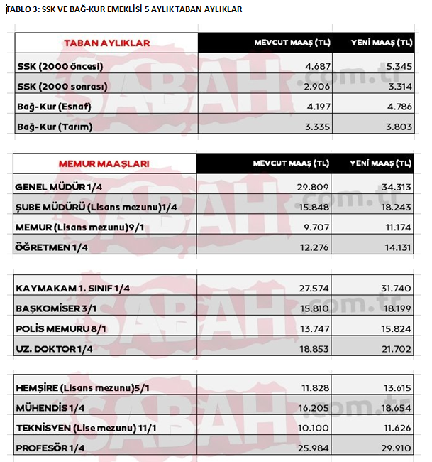 İşte milyonlarca vatandaşın merak ettiği emekli ve memur Ocak zammı ve enflasyon farkı ile beraber yeni emekli-memur maaşları hesaplama tabloları...