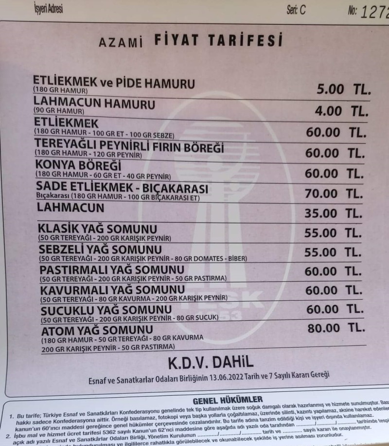 Daha önce 4 liradan satılan 180 gram etliekmek hamurunun fiyatı 5 liraya yükseldi.