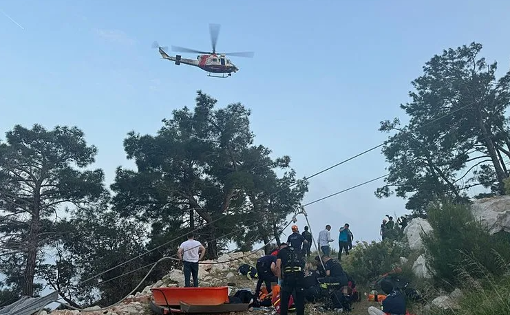 'Teleferik düştü' ihbarının ardından olay yerine çok sayıda AFAD, polis, itfaiye ve sağlık ekibi yönlendirildi. Arazinin dik ve taşlık olması nedeni ile ekipler bölgeye 1.5 saatte ulaştı.
