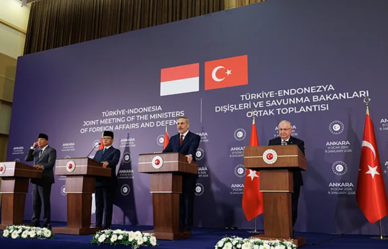 Dışişleri Bakanı Hakan Fidan ve Milli Savunma Bakanı Yaşar Güler’in ev sahipliğinde gerçekleştirilen Türkiye–Endonezya Dışişleri ve Savunma Bakanları Ortak Toplantısı sonrası ortak basın toplantısı düzenlendi. Toplantıya Endonezya Dışişleri Bakanı Sugiono ile Savunma Bakanı Sjafrie Sjamsoeddin de katıldı.