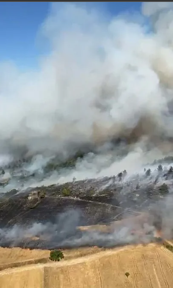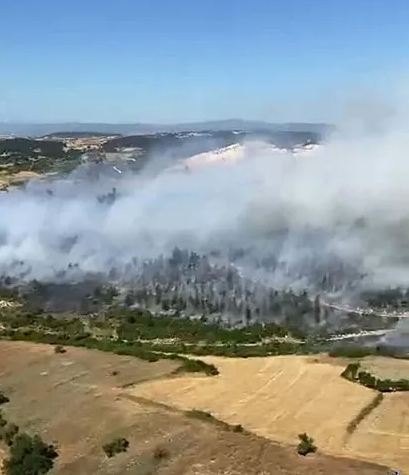 Ağaçlandırma sahasına da sıçrayan yangın için havadan ve karadan müdahale başlatan ekipler, yangını kontrol altına alma çalışmalarını sürdürüyor.