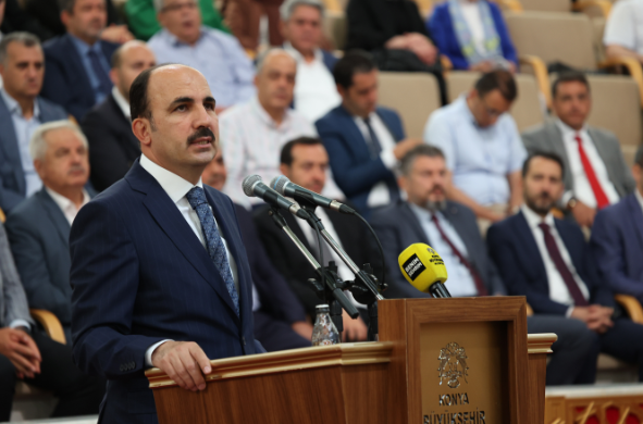 Konya için büyük bir gayretle hizmet etmek için gece gündüz çalıştıklarının altını çizen Başkan Altay konuşmasına şu sözlerle devam etti: “Aralıksız şekilde şehrimizde hizmetlerimize devam ediyoruz. Bir taraftan trafiği rahatlatması adına Necmettin Erbakan, Alparslan Türkeş caddeleri başta olmak üzere yeni caddeler açıyoruz. Bir taraftan Sedirler ve Taşköprü Alt Geçidi’nin yapımına devam ediyoruz. İnşallah en kısa sürede Fırat Caddesi ve Şehir Hastanesi’nin bulunduğu alanlara da yeni alt geçitler yapacağız. Toplu ulaşımda yeni otobüslerimizi şehrimize kazandırıyoruz. Konya banliyösünün inşaatı hızla devam ediyor. Yine Darü’l-Mülk Projesi kapsamında başta Larende dükkanları, Depo No:4 ve Meydan Evleri olmak üzere projelerimize aralıksız devam ediyoruz. Çatalhöyük Karşılama Merkezi’nde artık son aşamaya geldik. Akyokuş’ta, bayramda dikkatinizi çekmiştir, artık şehrin siluetine etki edecek bir bina ortaya çıkmaya başladı. Palye düzenlemesiyle Konya’ya gelenlerin ziyaret ettiği mekanımız inşallah şehrimize yakışır hale gelmiş olacak. Bir taraftan da Konya’nın en büyük kentsel dönüşüm projelerinden biri olan Eski Sanayi ve Karatay Sanayi’nin dönüşümünde de önemli bir mesafe kat ettik. Cephaneliğin Çumra bölgesine taşınmasıyla ilgili sürece de aralıksız devam ediyoruz. İnşallah bu işlerimizi tamamlayarak, 2024 yılındaki seçimlere hazır hale gelmiş olacağız.”