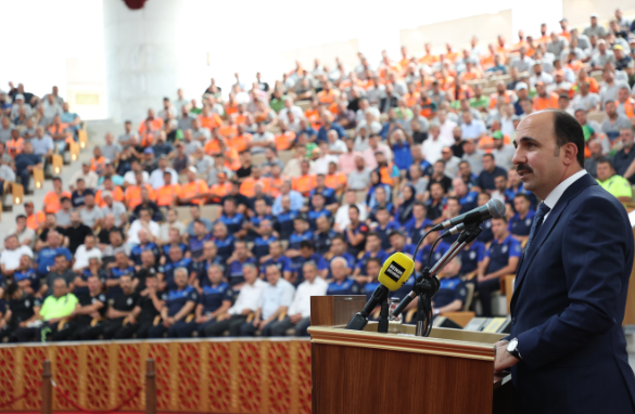 Başkan Altay son olarak deprem bölgesinde yaşananlardan çıkardıkları derslerle Konya’yı afetlere karşı daha güçlü hale getirmek için de çaba sarf ettiklerini belirterek, “Aslında 6 Şubat’ta yaşadığımız deprem belediyecilik adına da bir milat oldu. Bütün kurumların kendini yeniden gözden geçirdiği eylem planlarını yeniden yaptığı bir dönem yaşıyoruz. Biz de orada gördüklerimizden yaşadıklarımızdan başta arama-kurtarma, sonrasında lojistik faaliyetleri olmak üzere ve en önemlisi de şehrimizdeki bina stokunun, alt yapının güçlendirilmesiyle ilgili hem kendi hem de uluslararası kaynaklarımızla Konya’yı daha dirençli bir şehir haline getirmek için çaba sarf edeceğiz. 31 ilçesi 42 bin kilometrelik alanıyla bu mübarek şehri inşallah en güzel yere taşımak için gayretimiz artarak devam edecek. Sizlere görevlerinizde başarılar diliyorum” sözleriyle konuşmasını tamamladı.
