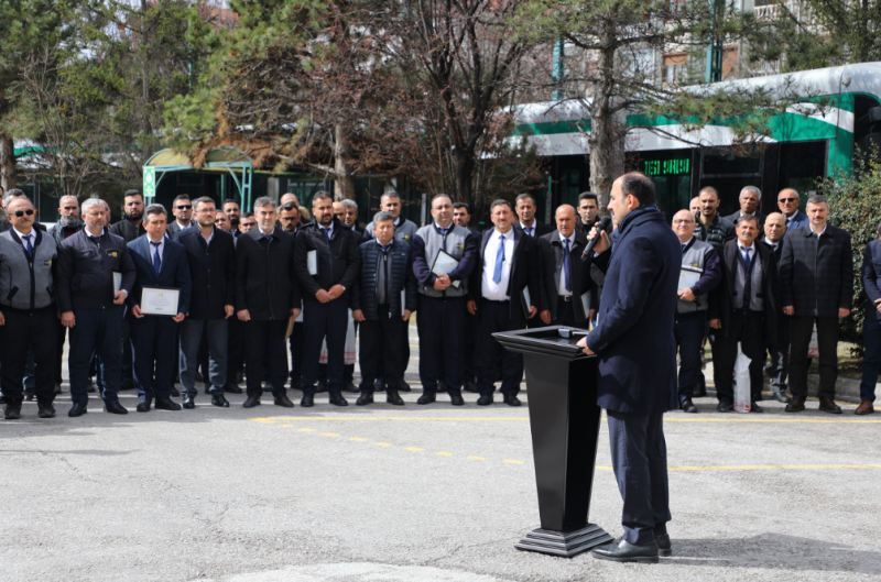 Daha sonra Ulaşım Dairesi personeliyle bir araya gelen Başkan Altay, burada da yaptığı konuşmada ulaşım biriminin normal zamanda da en yoğun çalışan birimlerden birisi olduğunun altını çizerek, Konya’nın özellikle merkezde toplu ulaşımda çok farklı hizmetler yürüten bir şehir olduğunu söyledi. Başkan Altay, “Bunda sizin çok büyük gayretiniz var. Hem vatmanlarımız hem otobüs şoförlerimiz, teknik birimlerimiz hep beraber şehirde insanların sabahleyin işe gitmelerini, akşam da tekrar rahat bir şekilde dönmeleri için yoğun bir çaba sarf ediyor. Bu günlük telaşenin yanında yaşadığımız deprem felaketinde de arkadaşlarımız çok yoğun bir gayretle önemli işler yaptı. Deprem bölgesinde çalışan arkadaşlarımıza tüm Türkiye adına teşekkür ediyorum. Çünkü buradaki zorluğu ortadan kaldırmak sadece depremi yaşayan insanlar için değil, tüm Türkiye için çok önemli ve kıymetliydi” açıklamasını yaptı.