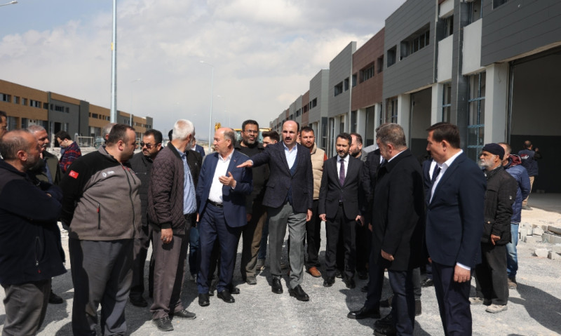 Konya Büyükşehir Belediye Başkanı Uğur İbrahim Altay, Karatay Belediye Başkanı Hasan Kılca, Esnaf ve Sanatkarlar Odaları Birliği Başkanı Muharrem Karabacak, Torna, Kaynak ve Oto Tamirciler Odası Başkanı Emin Baranok ve esnaflarla birlikte yeni sanayi sitesi şantiye alanında incelemelerde bulundu.