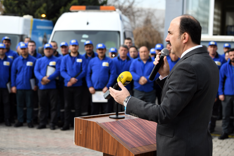 “EN TEMEL HEDEFİMİZ KONYA\'DA YAŞAYAN İNSANLARIN KESİNTİSİZ SAĞLIKLI SUYA ULAŞMALARI” Depremle ilgili riskin düşük olduğu bir şehir olmasına rağmen özellikle iklim değişikliği ve kuraklık konusunun Konya’nın en büyük sorunlarından birisi olduğuna dikkat çeken Başkan Altay şunları kaydetti: “Bizim en temel hedefimiz Konya\'da yaşayan insanların kesintisiz sağlıklı suya ulaşmaları. Onun için belki bu yıl biraz daha fazla gayret etmemiz gerekiyor. Gördük ki KOSKİ ekibimiz; başta genel müdürümüz, genel müdür yardımcımız, daire başkanlarımız, müdürlerimiz, şeflerimiz, tüm çalışma arkadaşlarımız çok güçlü bir iradeye sahipler. Allah\'ın izniyle sizlerle birlikte olduktan sonra başaramayacağımız bir iş yok. Tüm Konyalılar adına bu kutlu görevde gösterdiğiniz başarılardan dolayı hepinize ayrı ayrı teşekkür ediyorum. Allah birlik beraberliğimizi, muhabbetimizi, iş yapma alışkanlığımızı devam ettirsin.”