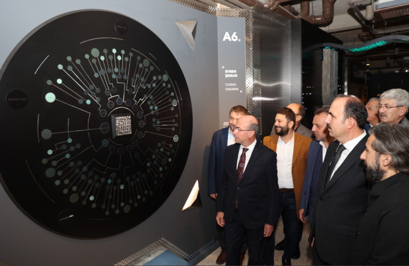 Sergi hakkında bilgi vererek konuşmasını sürdüren Başkan Altay, “Sergimiz genel hatlarıyla Türk-İslam tarihinin en önemli şehirlerinden Konya’mızın gizli kalmış medeniyet birikimini açığa çıkaracak. Sergide kurucu şahsiyetler olarak yer alan Mevlana Celaleddin Rumi, İbn-i Arabi, Sadrettin Konevi gibi ilim sahiplerini, farklı açılardan yeniden tefekkür etmeye dair yerleştirmede bulunuyor. Medeniyet hafızamızı okumak ve üzerine yeniden düşünmek maksadıyla şehrimizin 14 noktasında dağılmış halde bulunan tarihi eserleri ise bir araya getirmiş oluyoruz. İnce Minerali Medrese’nin girişinde yer alan ve aynı zamanda ana konseptini oluşturan ‘zengi düğümü’ serginin merkezinde yer alıyor. Bu mimari şaheserin günümüze taşıdığı sırları oldukça ilgi çekici ve merak uyandırıcı bir şekilde sergimizde anlattık. Sergide ayrıca 16. yüzyıl matematikçilerinden Matrakçı Nasuh’a ait Konya minyatürü, şehir kodları adıyla yeniden yorumlanıyor. Minyatür elektronik bir devreye dönüşerek Konya hakkındaki tarihi bilgiyi oldukça teknolojik ve etkileşimli bir dille yeniden okunur ve anlaşılır kılıyor. Sergimizin bir diğer odak noktası ise ‘piksel dokuma’ adı verilen geleneksel Türk Dokuma Sanatına dair çok özel dijital bir uygulama oluşturuyor olması. Dijital görüntü karesiyle halı ürün tekniğinin birleştirildiği bu teknikle klasik bilginin modern tekniklerle ilişkisini düşünmemizi sağlıyor. Burada toplam 16 farklı restorasyon birbirinden farklı görünmesine rağmen birbirini tamamlayan bir ilişki içerisinde ziyaretçilere sunulmuş oluyor” değerlendirmesinde bulundu.
