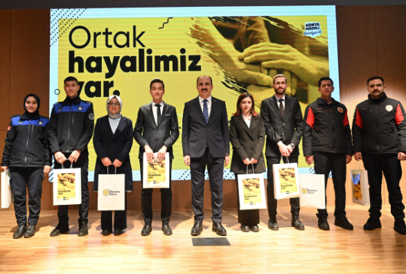 Belediyecilik yapmanın öneminden bahseden Başkan Altay, “Hem çocuklarımıza helal rızık götürüyoruz hem de bu dünyamıza ve öbür dünyamıza ait kazanımlar elde ediyoruz. Bir canlıyı kurtarmak, birine yardım etmek bütün bu sisteme dahil olmak Konya Büyükşehir Belediyesi’nin yaptığı tüm hayırlı işlere ortak olmak anlamına geliyor. Bence bütün çalışmalarınızın merkezine bunu koymanız lazım. Ayrıca bizim varlığımızın tek bir sebebi var arkadaşlar; bu şehrin nüfusu 2 milyon 300 bin olmasa, 31 ilçesi olmasa buradaki personele de ihtiyacımız olmayacaktır. Dolayısıyla veli nimetinizin vatandaşlar olduğunu asla unutmayın. Zor zamanlar olacak ama biz her zaman nezaketi, zarafeti ve üzerinde taşıdığımız üniformanın hakkını mutlaka vermek zorundayız. Biz hiçbir zaman Konya Büyükşehir Belediyesi çalışanı olduğumuzu unutmayacağız. Buradaki bütün insanlara aynı standartta hizmet üretmek zorundayız. Konya merkezdeki standardımız neyse Yunak’taki, Çeltik’teki, Halkapınar’daki, Emirgazi’deki standardımız da o olmak zorunda. Bizi güçlü ve büyük kılan da zaten bu. Onun için hep birlikte çok çalışacağız ve Konya’mıza hizmet edeceğiz” ifadelerini kullandı.
