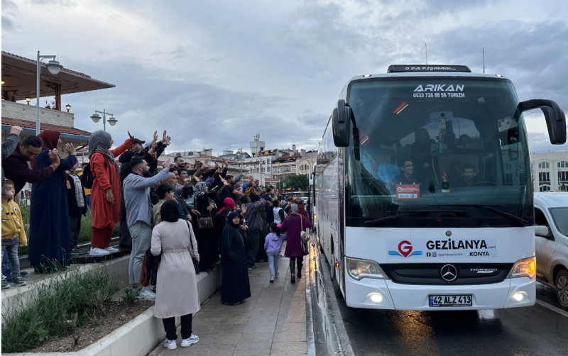 Daha sonra Türkiye’nin ilk Hac kafilesi Konya’dan dualarla uğurlandı.
