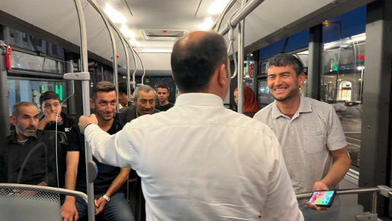 Konya’da toplu ulaşımdaki konforun arttırılması amacıyla ulaşım araçları modernize edilip yeni otobüsler şehre kazandırılıyor. Konya Büyükşehir Belediye Başkanı Uğur İbrahim Altay da sayıları yıl sonunda 177’ye ulaşacak otobüsler için mini bir kamuoyu yoklaması yaptı. Çat kapı bindiği belediye otobüsünde vatandaşlara yeni araçlardan memnun olup olmadıklarını soran Başkan Altay, aldığı cevap ve dualarla mutlu oldu.