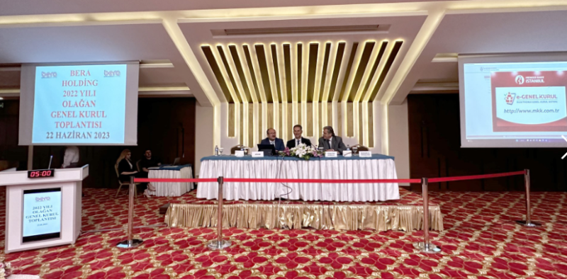 BERA Holding A.Ş.’nin 2022 yılı olağan genel genel kurul toplantısı 22 Haziran 2023 tarihinde Konya Bera Otel’de Holding yönetim kurulu ve ortaklarının katılımıyla yapıldı.
