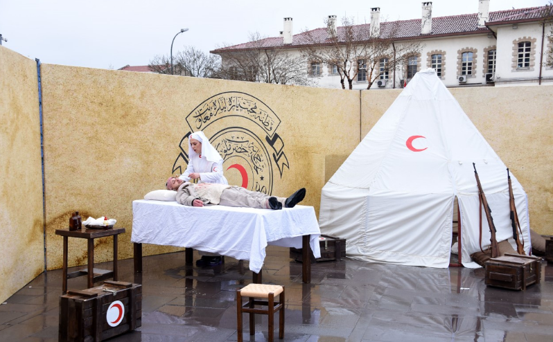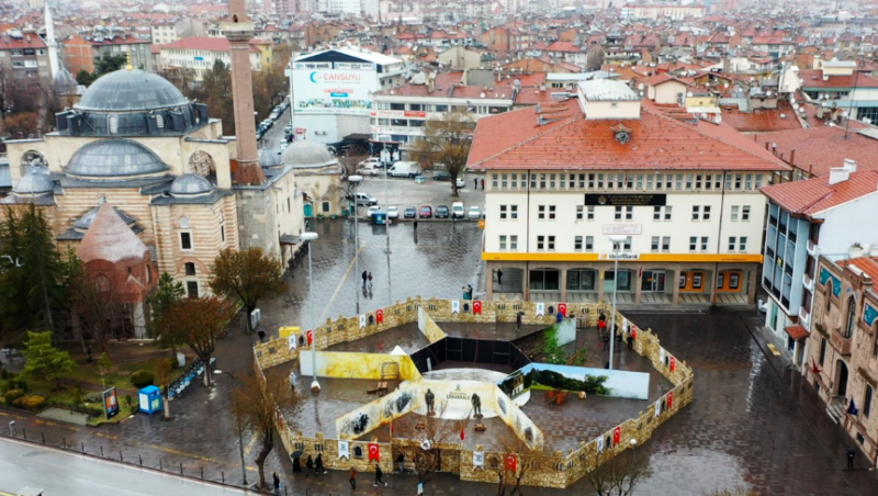Karatay Belediyesi Kültür Müdürlüğü tarafından koordine edilen anma programı için Hükümet Meydanı’nda, bin 100 metrekarelik alana içerisi panoramik olarak tasarlanan tarihi bir kale kuruldu. Aynı anda 5 ayrı gösteri için 5 farklı alana bölünen platformda 13 kişilik profesyonel tiyatro oyuncuları, 18 Mart 1915’te zor şartlarda kazanılan Çanakkale Zaferi’ni anlatan kısa tiyatro gösterileri yapıyor.