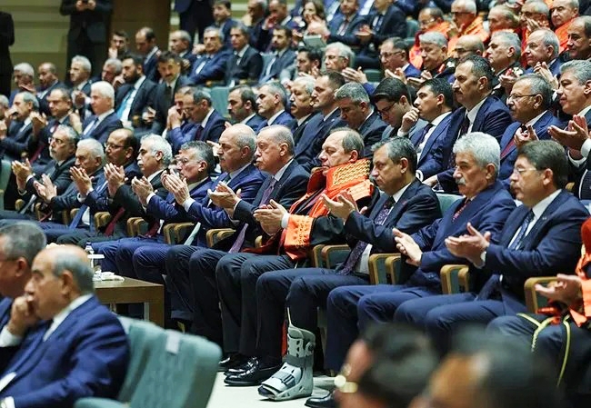 Bu vesileyle mesai mefhumu gözetmeden adaletin tecellisi için fedakarca çalışan yargı teşkilatımızın bütün mensuplarına şükranlarımı sunuyorum. Seçim atmosferinin geride bırakılmasını, yargı sistemimizin hızlı ve etkin işleyişi bakımından önemsiyoruz. İnşallah önümüzdeki dönemde tüm yargı organlarımız milletimizin adalet talebinin karşılanmasına daha rahat odaklanabilecek. Biz de bu süreçte devlet organlarının düzenli ve uyumlu çalışmasını temin başta olmak üzere, Anayasamızın Cumhurbaşkanlığı makamına verdiği görev ve yetkileri harfiyen yerine getirmeye devam edeceğiz. Uyumun güçlendirilmesi için, şayet atılması gereken hukuki adımlar varsa Meclisimizle birlikte bunları da inşallah yerine getireceğiz.