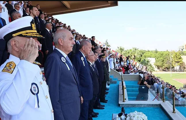 "251 yıldır iftihar vesilemiz olan köklü bir kurumun mensubu olmaktan ne kadar kıvanç duysanız azdır. Bahriyeli olmanın, böyle güzide bir eğitim kurumunda eğitim görmenin aynı zamanda ciddi sorumlulukları da beraberinde getirdiğini unutmayınız. Askerlik mesleğinin çeşitli kademelerinde hizmet ederken bu çatı altında kazandığınız bilgi, disiplin ve değerler sizin her zaman rehberiniz olacaktır. Vatanımıza, milletimize, devletimize karşı görevlerinizi en güzel şekilde yerine getireceksiniz. Gerekirse bu uğurda tıpkı kahraman ecdadımız gibi şairin ifadesiyle anadan, yardan, serden geçecek, korkusuzca şehadete yürüyeceksiniz. Türkiye'yi yüceltmek, mavi vatandaki hak ve hukukumuzu korumak için hiçbir fedakarlıktan kaçınmayacaksınız. Üzerinizdeki o ak üniformayı hiçbir leke bulaştırmadan şanla, şerefle ömür boyu taşıyacaksınız. Ben bu kararlılığı, bu yiğitliği ve inanmışlığı şu an karşımdaki tabloda görüyorum. Ne diyor İstiklal Marşımızda? 'Kim bu cennet vatanın uğruna olmaz ki feda. Şüheda fışkıracak toprağı sıksan şüheda. Canı, cananı, bütün varımı alsın da Hüda. Etmesin tek vatanımdan beni dünyada cüda.' Sizlerin mücadelesiyle, sizlerin fedakarlıklarıyla hiçbir güç aziz milletimizi vatanından kopartamayacak."