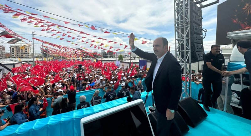 Asya’dan Afrika’ya, Avrupa’dan Türk Cumhuriyetlerine, gönül coğrafyamızdaki 100 milyonlarca kişinin duasını, desteğini hep yanlarında hissettiklerini kaydeden Cumhurbaşkanı Erdoğan, “Daha önce hiçbir karşılık beklemeden imdadına koştuğumuz kim varsa 6 Şubat depremlerinden sonra hemen hepsi milletimizin yanında oldu. Biz de bu süreçte depremzedelerimizi hiçbir zaman yalnız bırakmadık. Depremden en çok yıkıma uğrayan Hatay’ı az önce söylediğim gibi Konya’ya zimmetlemiştik. Konya Büyükşehir Belediyemiz ve diğer belediyelerimiz burada gerçekten fedakarca çalıştılar. Sağ olsunlar. Belediyelerimiz, altyapıdan üstyapıya, aşevlerinden çadır ve konteyner kent kurulumuna kadar her ihtiyacınızda sizlere destek verdiler. Arkadaşlarımız reklam yapmadılar. Şov peşinde koşmadılar. Başkaları gibi buralara poz vermeye, yıkıntılar önünde siyasi nutuk atmaya gelmediler. Sadece Hakk’ın ve halkın rızasını gözeterek, sağ elin verdiğini sol ele duyurmadan gece gündüz koşturdular. Rabbim hepsinden razı olsun” ifadelerini kullandı.