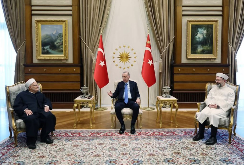 Cumhurbaşkanı Recep Tayyip Erdoğan, Mescid-i Aksa İmam Hatibi Şeyh İkrime Sabri'yi, Cumhurbaşkanlığı Külliyesi'nde kabul etti.