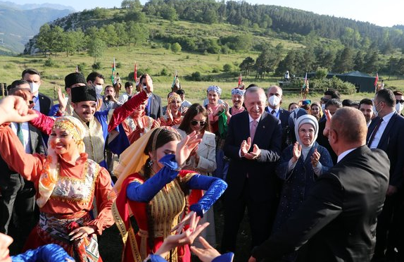 "Nerede bir vatandaşımız, soydaşımız varsa oradayız" şiarıyla Rumeli'den Kafkasya'ya hiçbir kardeşlerini boynu bükük bırakmadıklarını ifade eden Erdoğan, ortak tarih, dil, inanç ve kültür birliği içinde olunan tüm ülkelerle yeniden kucaklaştıklarını kaydetti.