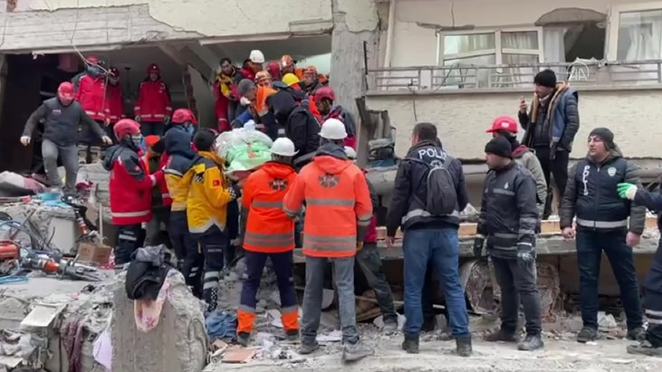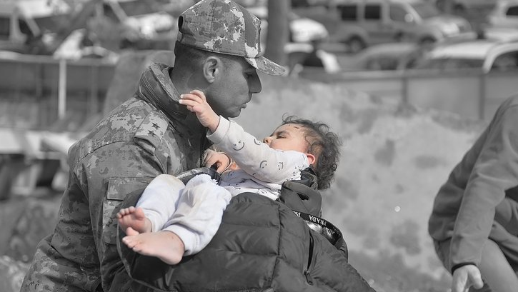 Hatay'da 2 aylık Mehmet Çınar isimli bebek enkazdan sağ olarak çıkarıldı. Onu sağ olarak çıkaran görevli kucağına alıp; "Oy babam, oy babam" diyerek sevip bağrına bastı.