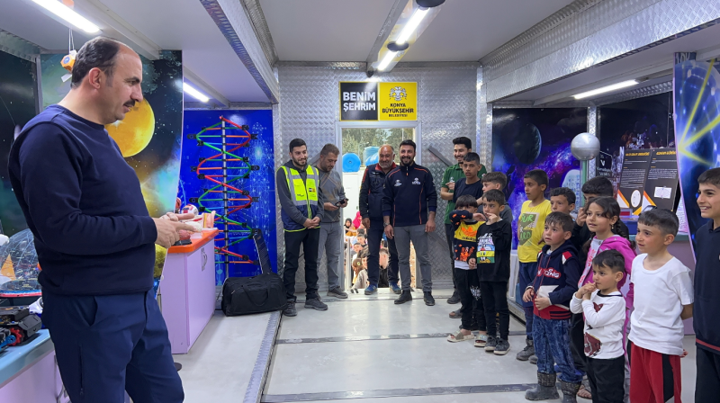 Konya Büyükşehir Belediyesi Bilim Merkezi bünyesinde faaliyet gösteren Bilim Tırı ile Hatay’daki depremzede çocuklar, hem bilimin eğlenceli haliyle tanışıyor hem de moral buluyor. Konya Büyükşehir Belediye Başkanı Uğur İbrahim Altay, Hatay’da Bilim Tırı\'nı ziyaret ederek, çocuklarla bir araya geldi. Başkan Altay, depremin ilk gününden beri yaraları sarmak için Hatay’da ihtiyaç olan her türlü belediyecilik hizmetlerini sağlamaya çalıştıklarını belirterek, bir taraftan da çocuklara yönelik destek faaliyetleri yürüttüklerini söyledi.