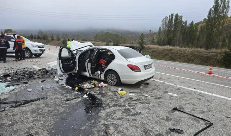 Çarpışmanın ardından otomobillerden biri alev aldı ve kullanılamaz hale geldi.