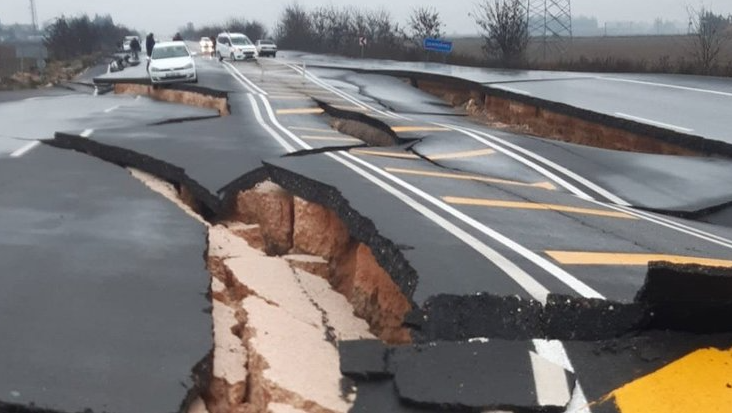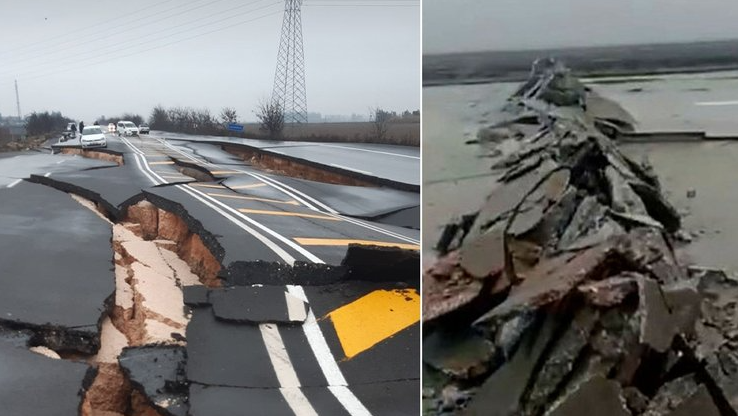 Hatay'da yıkılan ve hasar gören binalarda çalışmalar sürerken; Kırıkhan-Reyhanlı arasındaki yolda ise çökme yaşandı.