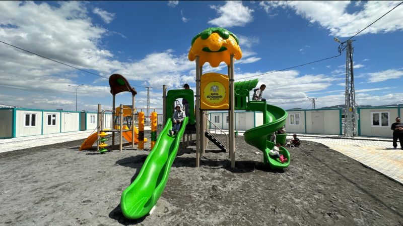 Konteyner kentimizde ayrıca sosyal amaçlar için; sağlık kabini, güvenlik binası, çocuk oyun alanları, mescit ve yapacağımız camisiyle birlikte Konya’ya yakışır bir alan oldu.