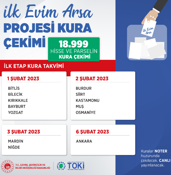 “İlk Evim Arsa” projesi 1. etap kuraları 1-6 Şubat 2023 tarihleri arasında 13 ili kapsayacak: