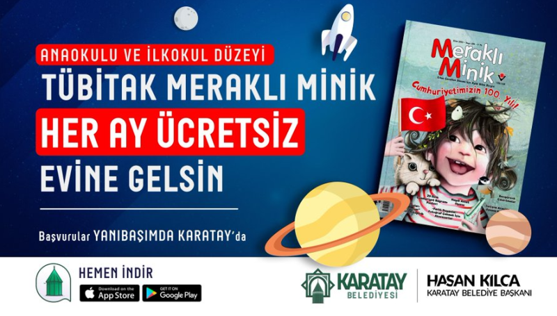 Karatay Belediye Başkanı Hasan Kılca ilçedeki minik öğrencilere müjdeli bir haber verdi. Öğrencileri merakla beklediği proje için açıklama yapan ve başvuruların başladığını belirten Karatay Belediye Başkanı Hasan Kılca, "Karatay'da eğitim gören anaokulu ve ilkokul düzeyindeki miniklerimize güzel bir haberim var. Sevgili çocuklar, merakla beklediğiniz TÜBİTAK Meraklı Minik Bilim Dergisi ücretsiz abonelikleri için başvurular başladı.