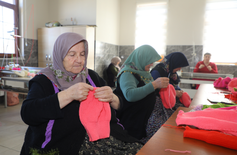 Depremin ilk anından itibaren afetzedelerin içini ısıtmak için güç birliği yapan KOMEK, merkez ve ilçelerdeki atölyelerde nevresim takımı, kıyafet, battaniye ve uyku tulumu üretiminin yanında Doğanhisar ve Seydişehir Trikotaj Atölyesinde de; atkı, bere, ceket ve yelek üretimi yapıyor. Dikiş makinesi başına geçen kursiyer ve gönüllüler ilk aşamada 15 bin 117 parça kışlık ürünü dikerek deprem bölgesine göndererek depremzedelerin içini ısıttı.