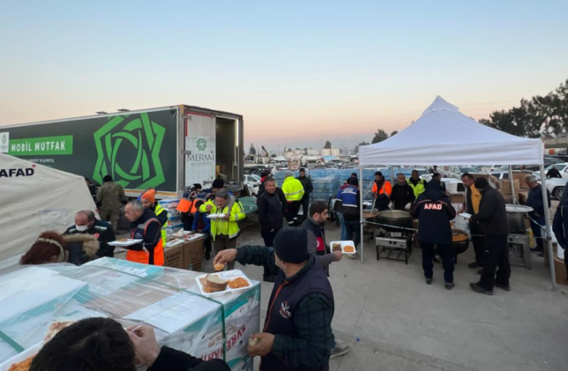 Türkiye tarihinin en büyük afeti olan Kahramanmaraş depremlerinin hemen ardından seferber olan Meram Belediyesi, afet bölgesinde yürüttüğü çalışmalara ara vermeden devam ediyor. Hatay ve çevresindeki yerleşim yerlerinde afetzedelerin yanında olan Meram Belediyesi, arama kurtarma çalışmalarından çevre temizliğine, enkazların kaldırılmasından yardımların dağıtılmasına, mobil mutfak hizmetinden hasar tespit çalışmalarına kadar ihtiyaç duyulan her alanda yaraları sarıyor.
