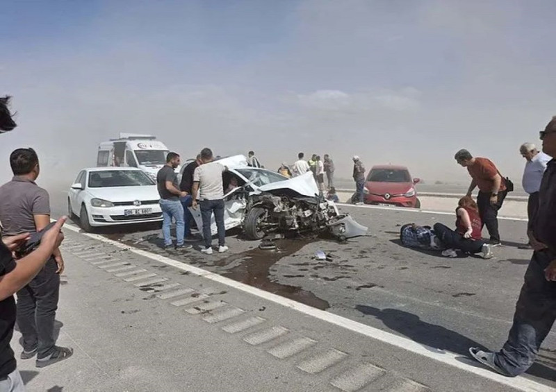 Kaza, Aksaray’ın Saruhan bölgesinde sabah saatlerinde etkili olan yoğun kum fırtınası nedeniyle meydana geldi. Görüş mesafesinin aniden düşmesi sonucu aynı istikamette seyir halindeki 5 araç birbirine çarptı. Kazaya karışan araçların sürücülerinin kimlikleri henüz açıklanmadı.