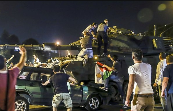 Millet bunları binaya hapsetti. Dışarı çıkamıyorlar. Vatandaşı helikopterle tarıyor, silahla vuruyorlar ama caddelere siviller hâkim. Daha sonra resimlere baktım, kafası parçalanmış insanlar gördüm. Ona rağmen sivil insanlar akın akın silahlı askerlerin üzerine yürüdü. Bu millet asil bir millet, ölümü göze alan yiğitler, tankların ve silahların üzerine yürüdü, yürüdük. Hayatında silah görmemiş insanlar orada. “