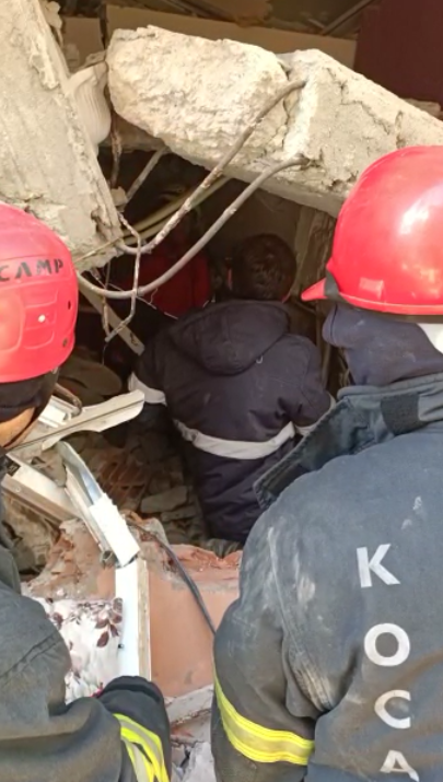 Afad ekipleri, Kocaeli itfaiyesi, Konya itfaiyesi ve Kore’den gelen arama kurtarma ekipleri ile beraber koordineli olarak arama kurtarma çalışmalarına hızla başladık. İlk başta biraz çekindik, artçı sarsıntıların devam ediyordu kalan binalarında çok hasarlı olduğunu biliyorduk ama çalışmalarımıza gayretle hemen başladık. İlk olarak Kocaeli itfaiyesi ile anne ve kızını kurtardık.