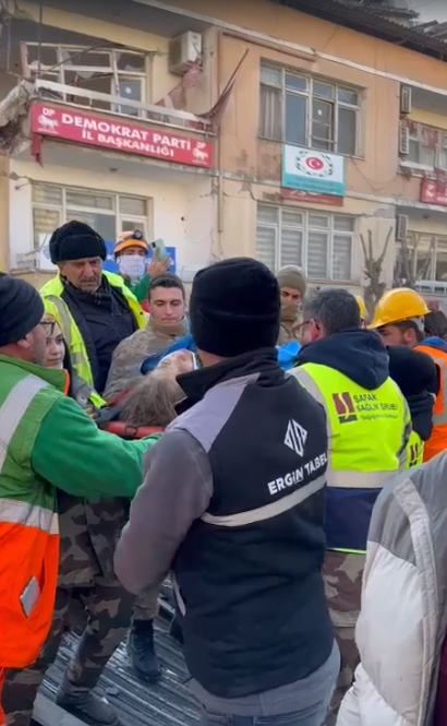 Sokakların dar olması iş makinesinin girmemesi bize zorlu anlar yaşattı. Ancak bu bizi yıldırmadı. Bütün ekipmanlarımızı sırtımıza aldık, enkaz bölgelerine giderek çalışmalara devam ettik. Yanımızda bulunan iki hemşire arkadaşımız, sağlık ekibimizle tam bir kurtarma ekibi olmuştuk. Tabi bizim teknik cihazlarımız termal kameralarımız yoktu ama olan arkadaşlardan destek alarak el becerimizle mücadele ettik.