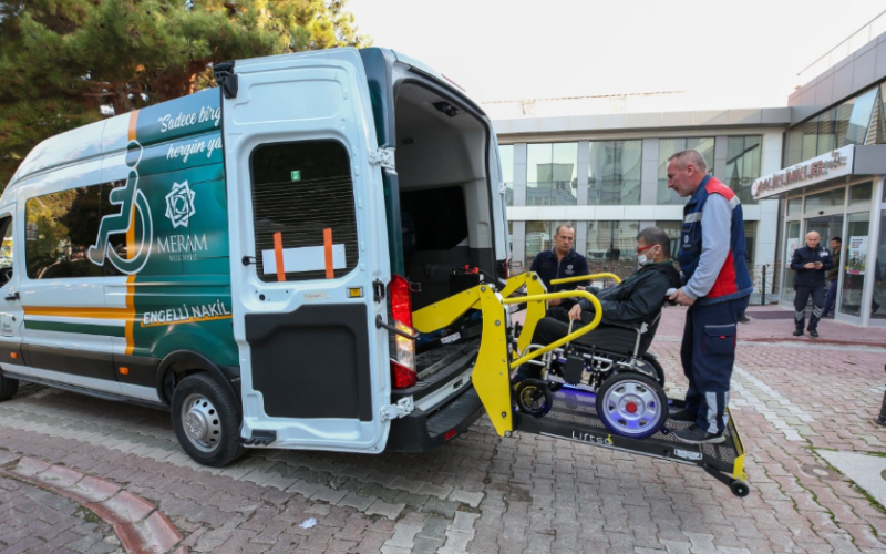 Engelli vatandaşların hastanelere ulaşımındaki zorlulukların aşılması için de çalışma başlatan Meram Belediyesi, engelli nakil aracı ile tekerlekli sandalyeli vatandaşları hastane randevularına ulaştırıyor.