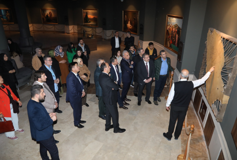 Konya Büyükşehir Belediyesi’nin ev sahipliğinde gerçekleşen yönetim kurulu toplantısı için Konya’ya gelen Türk Dünyası Belediyeler Birliği (TDBB) Yönetim Kurulu üyeleri, Konya’da tarihi mekanlar ile Konya Büyükşehir Belediyesi’nin örnek projelerini ziyaret ederek Hazreti Mevlânâ’nın 749. Vuslat Yıl Dönümü Anma Etkinlikleri’ne katıldı. Yurtiçinden ve yurtdışından Konya’ya gelen belediye başkanları toplantıların ardından TDBB Başkanı ve Konya Büyükşehir Belediye Başkanı Uğur İbrahim Altay’ı ziyaret etti. Büyükşehir Taş Bina’da gerçekleşen ziyarette, heyet tarihi binada oluşturulan Konya Tanıtım Merkezi’ni gezerek Başkan Altay’dan bilgi aldı. Alaaddin Camii’nde gerçekleştirilen Sultanlara Saygı Nöbeti programını da takip eden TDBB Yönetim Kurulu Üyeleri daha sonra Konya Büyükşehir Belediyesi Kapsül Teknoloji Platformu’nu ziyaret ederek Kapsül ve Sosyal İnovasyon Ajansı hakkında bilgi aldı. Ardından Konya Panorama Müzesi ile İrfan Medeniyeti Araştırma ve Kültür Merkezi’ni gezen heyet, Hazreti Mevlana’nın türbesini de ziyaret ederek Mevlana’nın sandukası başında dua etti. Belediye başkanları son olarak Hazreti Mevlana’nın 749. Vuslat Yıldönümü Uluslararası Anma Etkinlikleri kapsamında Büyükşehir Belediyesi Mevlana Kültür Merkezi’nde icra edilen Sema Ayin-i Şerifi’ne de katıldı. TDBB Başkanı ve Konya Büyükşehir Belediye Başkanı Uğur İbrahim Altay, yönetim kurulu üyelerini Hazreti Mevlânâ’nın 749. Vuslat Yıl Dönümü Anma Etkinlikleri’nin devam ettiği bir dönemde Konya’da ağırlamaktan büyük memnuniyet duyduklarını belirterek, TDBB çatısı altında birlikte güzel işler yapmak için çalışmaya devam edeceklerini söyledi. Konya Büyükşehir Belediyesi’nin Türkiye’ye ve dünyaya örnek çalışmalar yürüttüğünü belirten TDBB yönetim kurulu üyeleri de sıcak ev sahipliğinden dolayı Başkan Altay’a teşekkür etti.