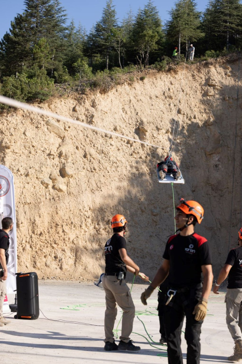 Alanda hazır bulunan yaren Arama kurtarma teknik ekipleri tarafından gönüllülere yüksekten iniş teknikleri aktarıldı ve ardından sedye ile yaralı tahliyesi uygulamalı olarak gerçekleştirildi. Eğitim sonunda gönüllüler, güvenli tahliye yöntemleri ve ip sistemleriyle ilgili pratik kazandı.