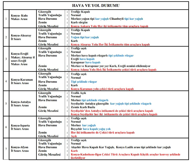 ▪️Konya Adana yolu her iki istikamette çekici türü araçlara trafiğe kapalı