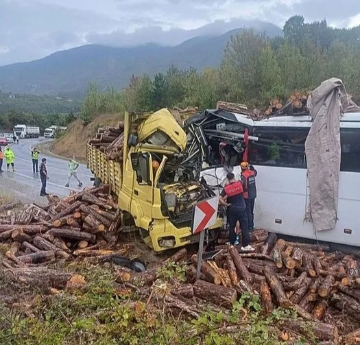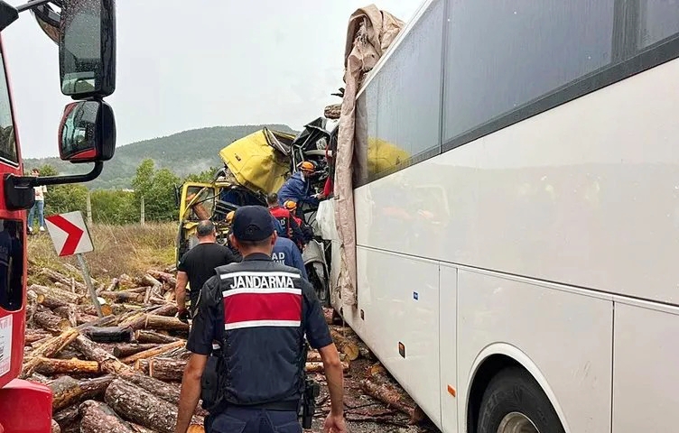 Gökçebey-Yenice yolu Karahatipler mevkisinde, Metro Turizme ait 61 S 0870 plakalı Bartın-Erzurum seferini yapan yolcu otobüsü ile 37 HB 447 plakalı tomruk yüklü kamyon çarpıştı.