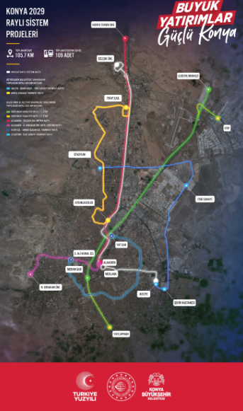 Konuyla ilgili açıklamalarda bulunan Konya Büyükşehir Belediye Başkanı Uğur İbrahim Altay, Ulaştırma ve Altyapı Bakanlığı ile birlikte Konya’ya 105 kilometrelik raylı sistem hatları kazandıracaklarını hatırlattı.