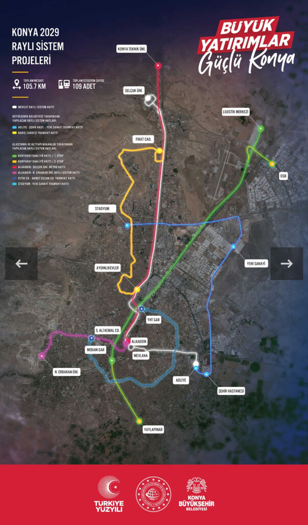 Cumhurbaşkanı Recep Tayyip Erdoğan’ın imzasıyla çıkan ve “Resmî Gazete”de yayımlanan kararla; Konya Şehir Hastanesi – Stadyum 2. Etap Tramvay Hattı’nın yapımının Ulaştırma ve Altyapı Bakanlığı tarafından üstlenildiği duyuruldu.