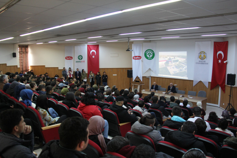 Çumra Şeker Fabrikası'nın Türkiye'nin en büyük kapasiteli şeker fabrikası olduğunu ifade eden Başkan Ramazan Erkoyuncu, "Konya Pancar Ekicileri Kooperatifi'nin iştirakleri arasında yer alan TORKU markası, Konya ve Çumra Şeker Fabrikaları'nın yanı sıra AB Holding bulunmaktadır. Çumra Şeker Fabrikası, Türkiye'nin en büyük kapasiteli şeker fabrikasıdır. Günlük kapasitesi şu an 16 bin ton olan fabrikamız, kapasite artırım çalışmamızla birlikte 20 bin ton olacak. Konya ve Çumra Şeker Fabrikalarımızla Türkiye'nin yüzde 16 ila 17 şeker ihtiyacına katkı sunmaktayız. Ülkemizde üretilen ortalama 2,9 milyon ton şekerin 500 bin tonunu Konya ve Çumra Şeker Fabrikalarımız karşılamaktadır. Şeker sektöründe iddialıyız. Atıştırmalık Ürünler Fabrikamız, Türkiye'nin en büyük süt ve et entegre tesisi olan Panagro ile de ülke ekonomisine katkı sunmaktayız. Ürünlerimiz tamamen doğal olarak üretilmektedir. Markamızın kamuoyu nezdinde hakettiği karşılığı almasını diliyorum" ifadelerine yer verdi. Programa Selçuk Üniversitesi Rektör Yardımcısı Prof. Dr. Zeki Bayramoğlu, Ziraat Fakültesi Dekanı Prof. Mustafa Harmankaya, Dekan Yardımcısı Doç. Dr. Ali Yavuz Şeflek, Dekan Yardımcısı Doç.Dr. Zuhal Karakayacı, Fakülte Sekreteri Emrecan Erdem, Prof. Dr. Ramazan Acar, Prof. Dr. Sait Gezgin, Prof. Dr. Mehmet Zengin, Prof. Dr. Rahim Ada, Prof. Dr. Mehmet Ali Avcı, Prof. Dr. Ayhan Göktepe, Prof. Dr. Ümmühan Çetin Karaca, Doç.Dr. Hasan Arısoy, Doç.Dr. Hamza Negiş, Doç.Dr. İlknur Gümüş ve Doç.Dr. Mehmet Şahin katıldı.